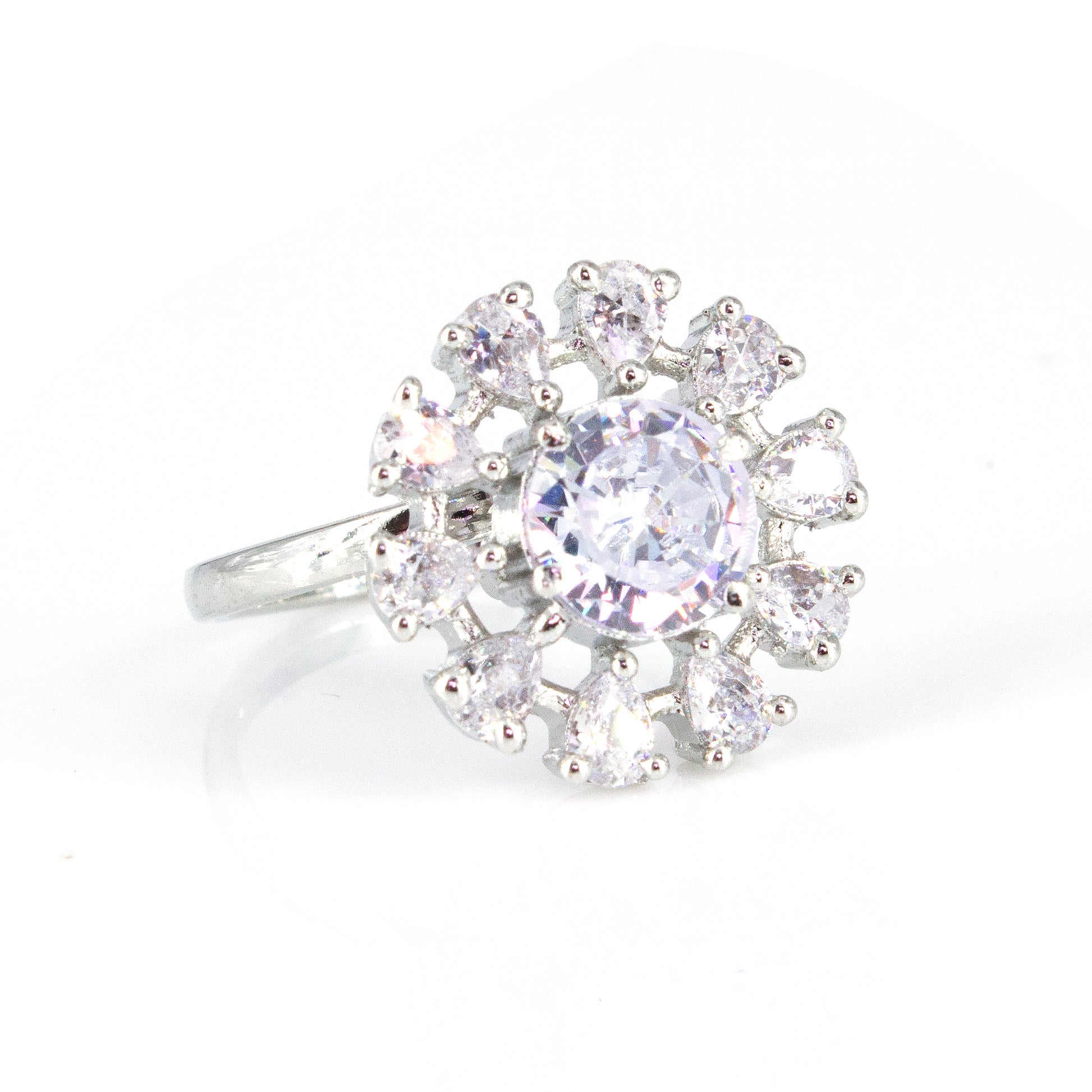 Silver Plated American Diamond Ring Comes In Adjustable Size For Every Traditional Yet Classy Days Outfit.
