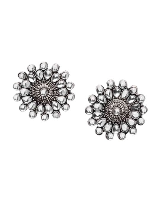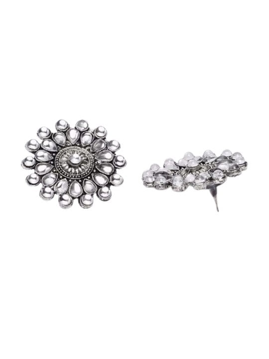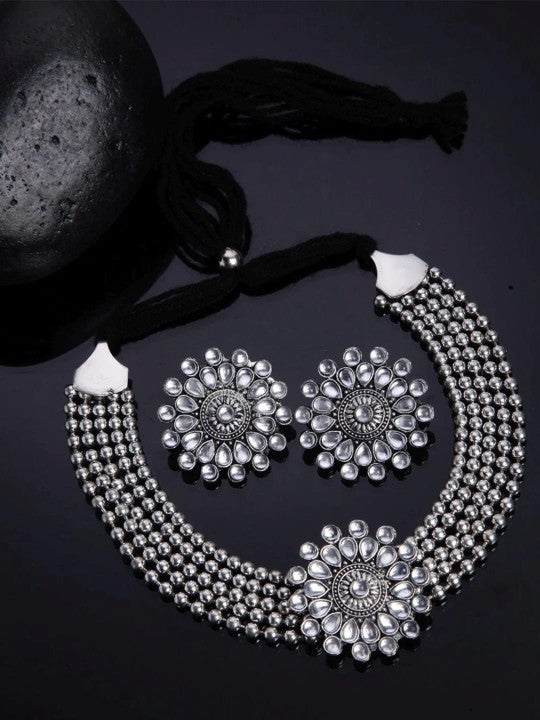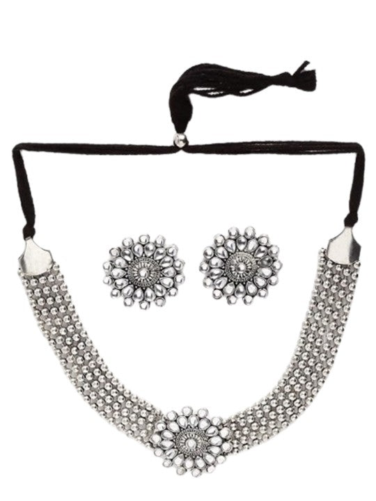 Silver-Plated Floral Kundan-Studded Jewellery Set