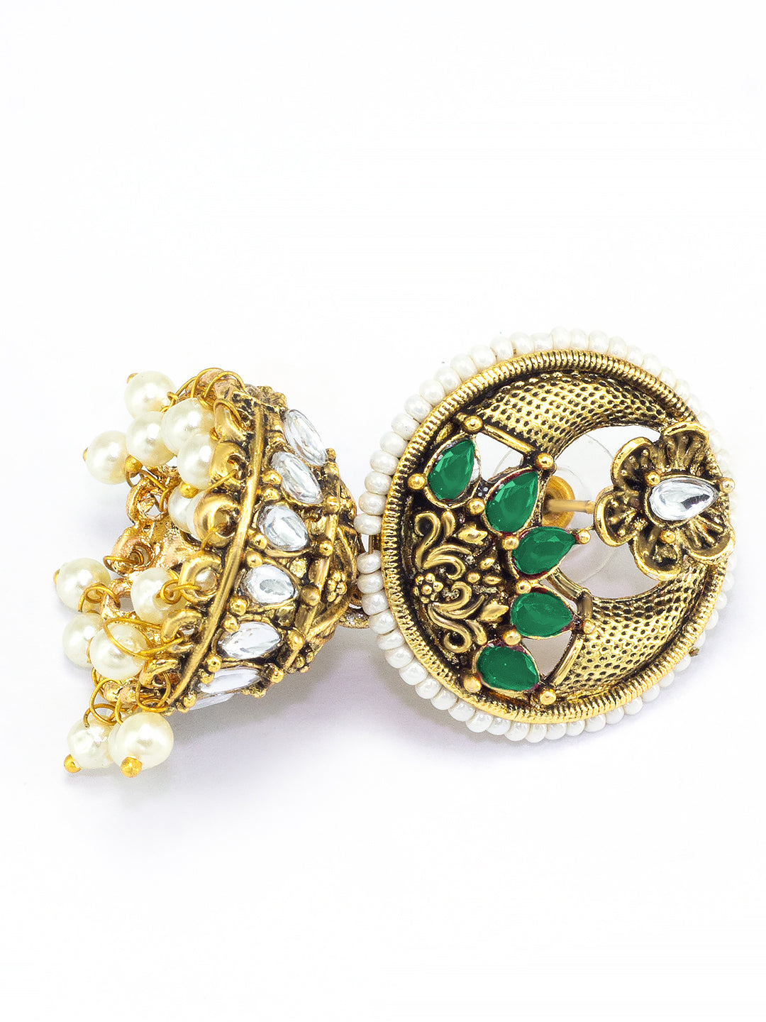 Gold-Toned Dome Shaped Kundan Studded Jhumkas