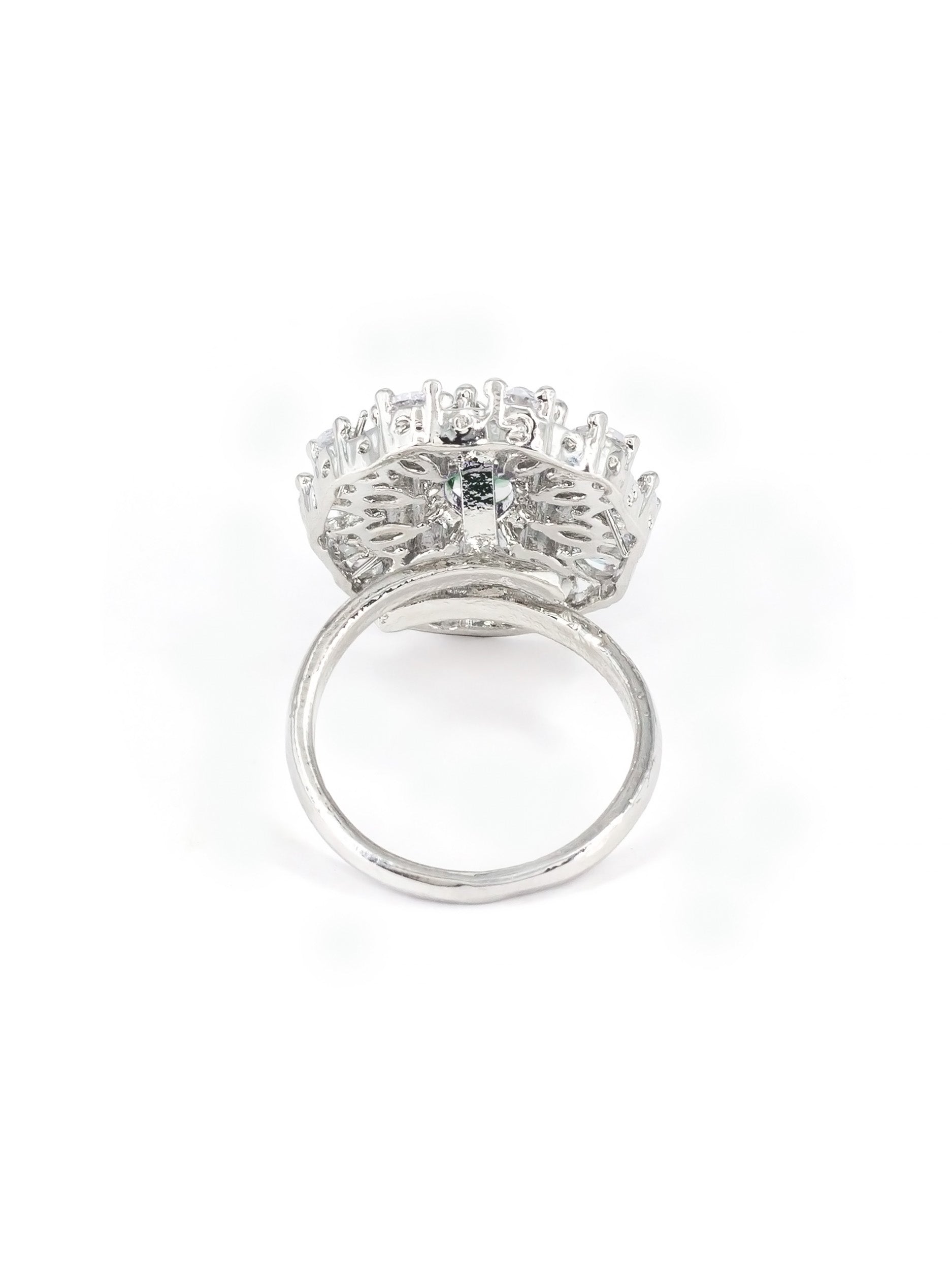 Silver Plated Green AD Adjustable Ring for Women secured with adjustable closure.