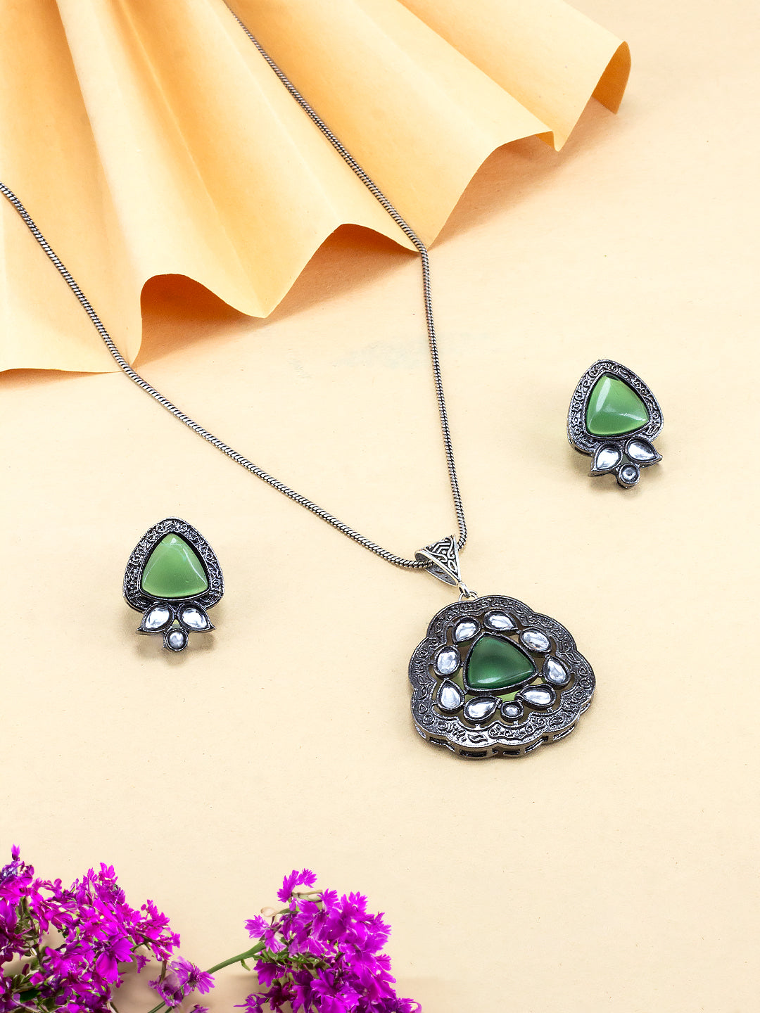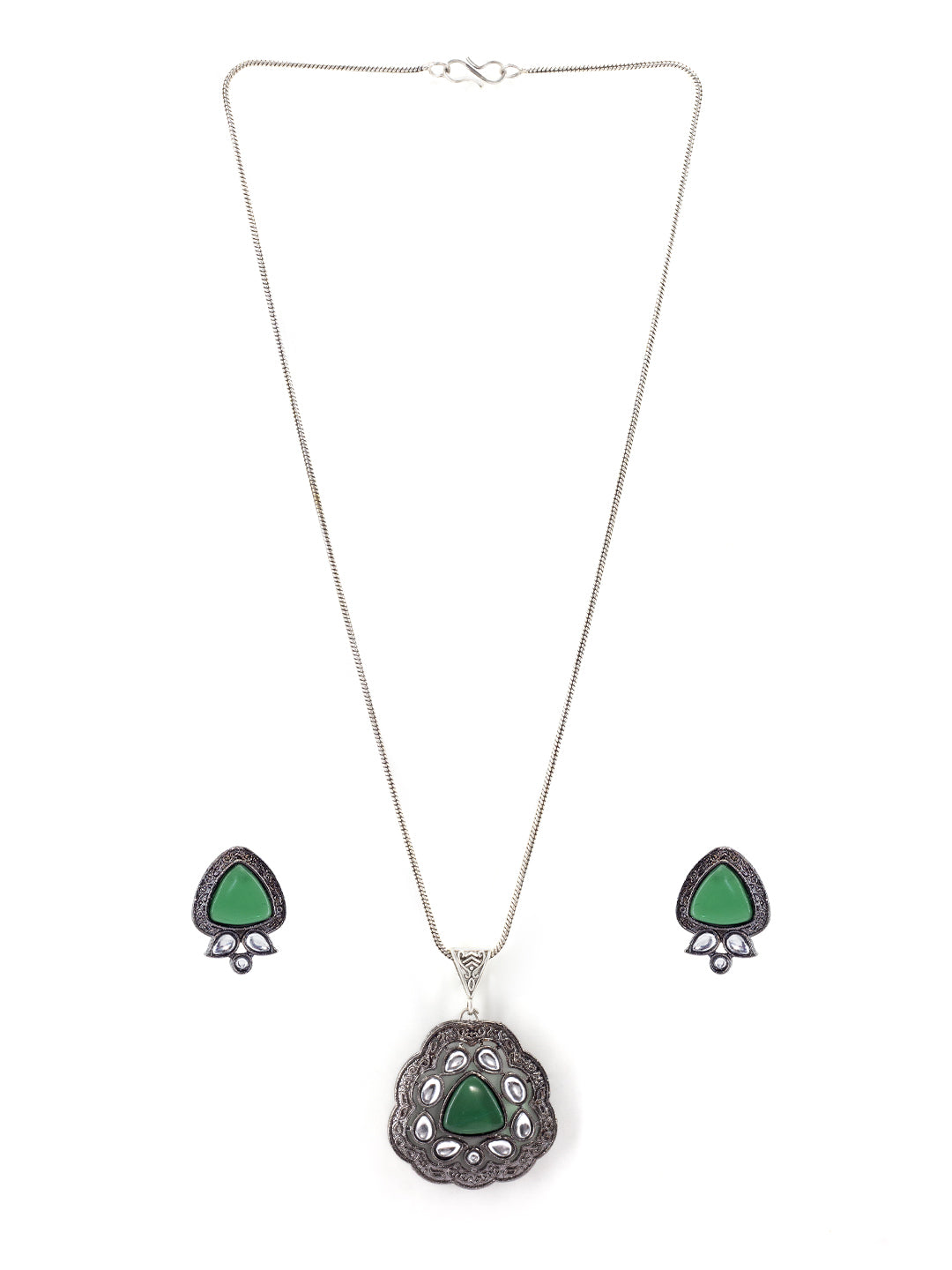 Gold-Plated Green Oval AD-Studded Pendant Set
