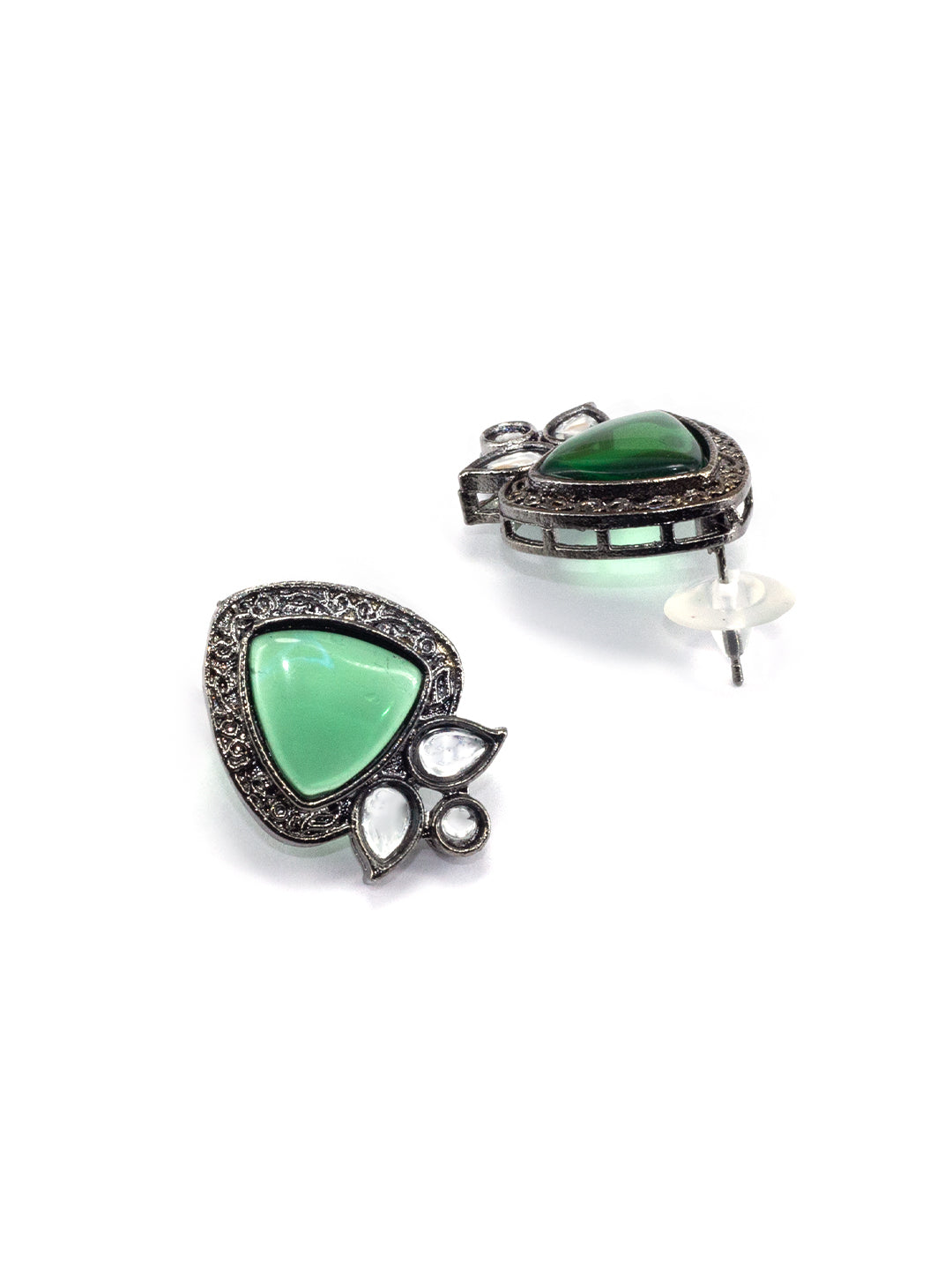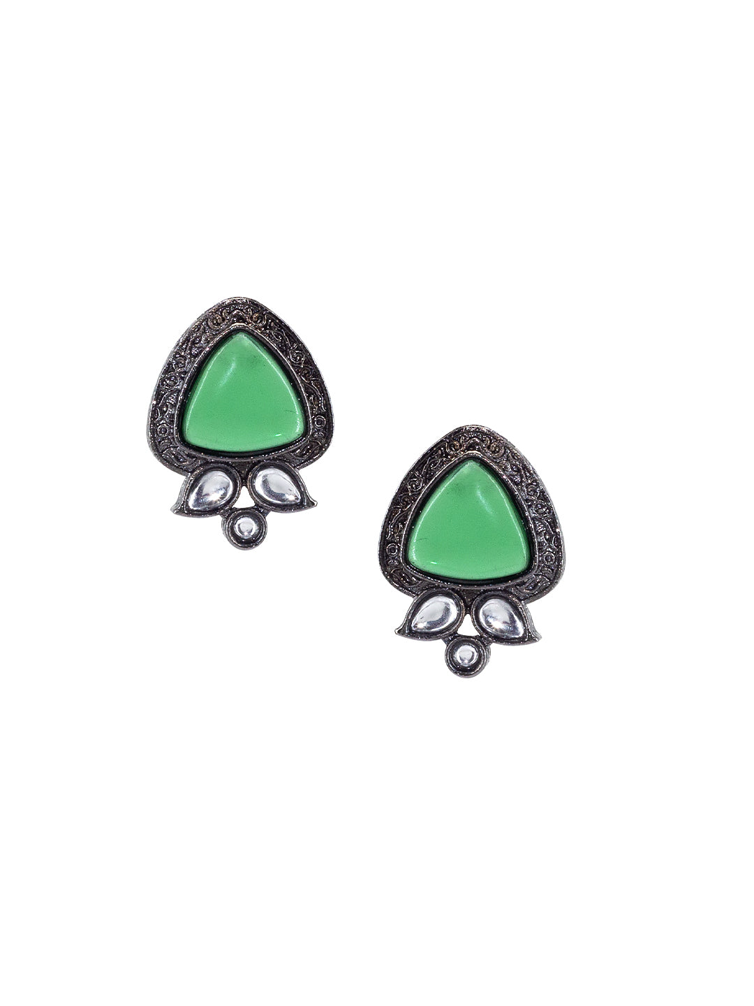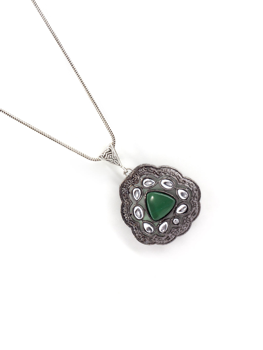 Silver-plated choker necklace, has green Kundan stone-studded details