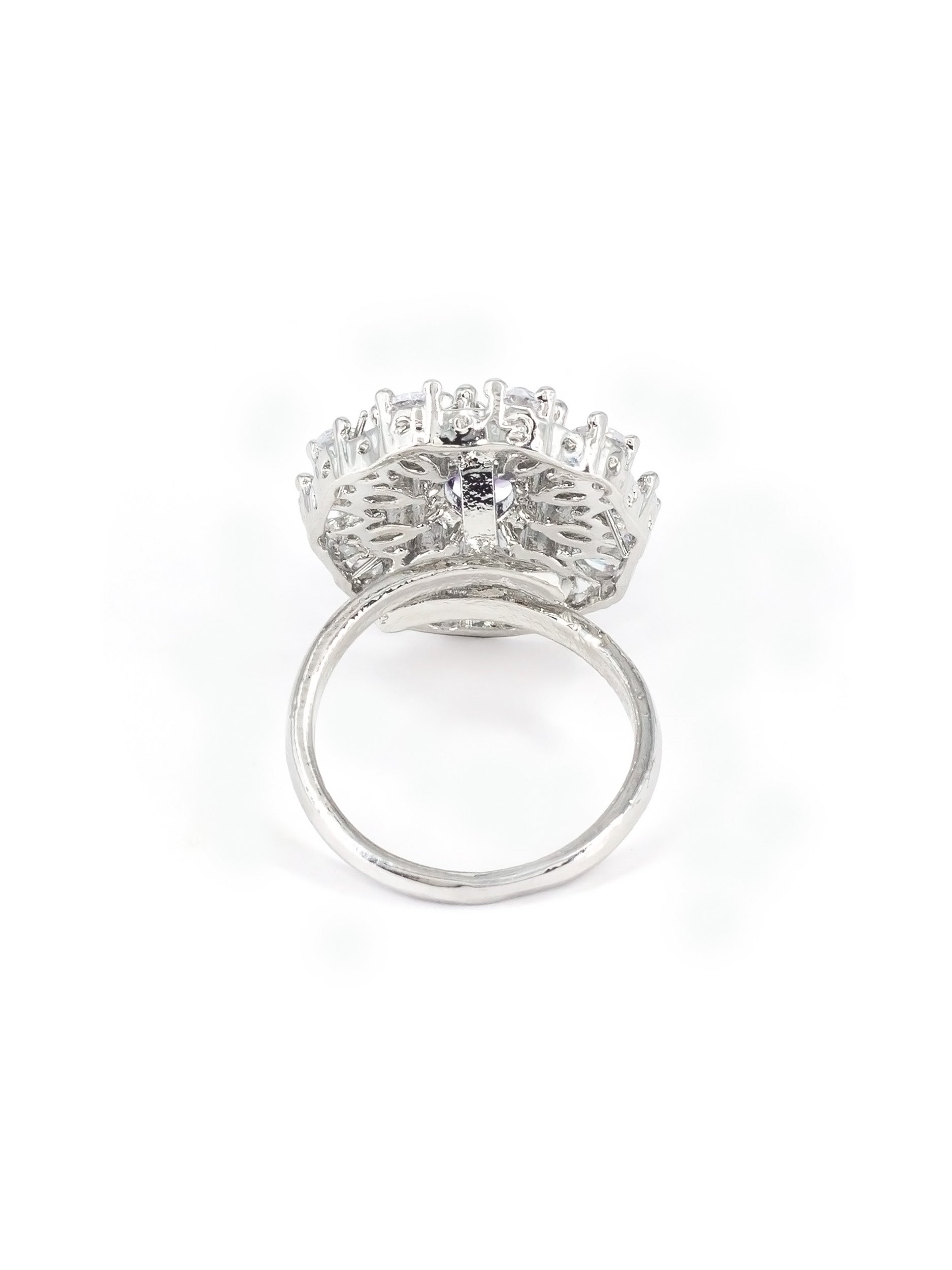 Rhodium Plated American Diamond Adjustable Finger Ring