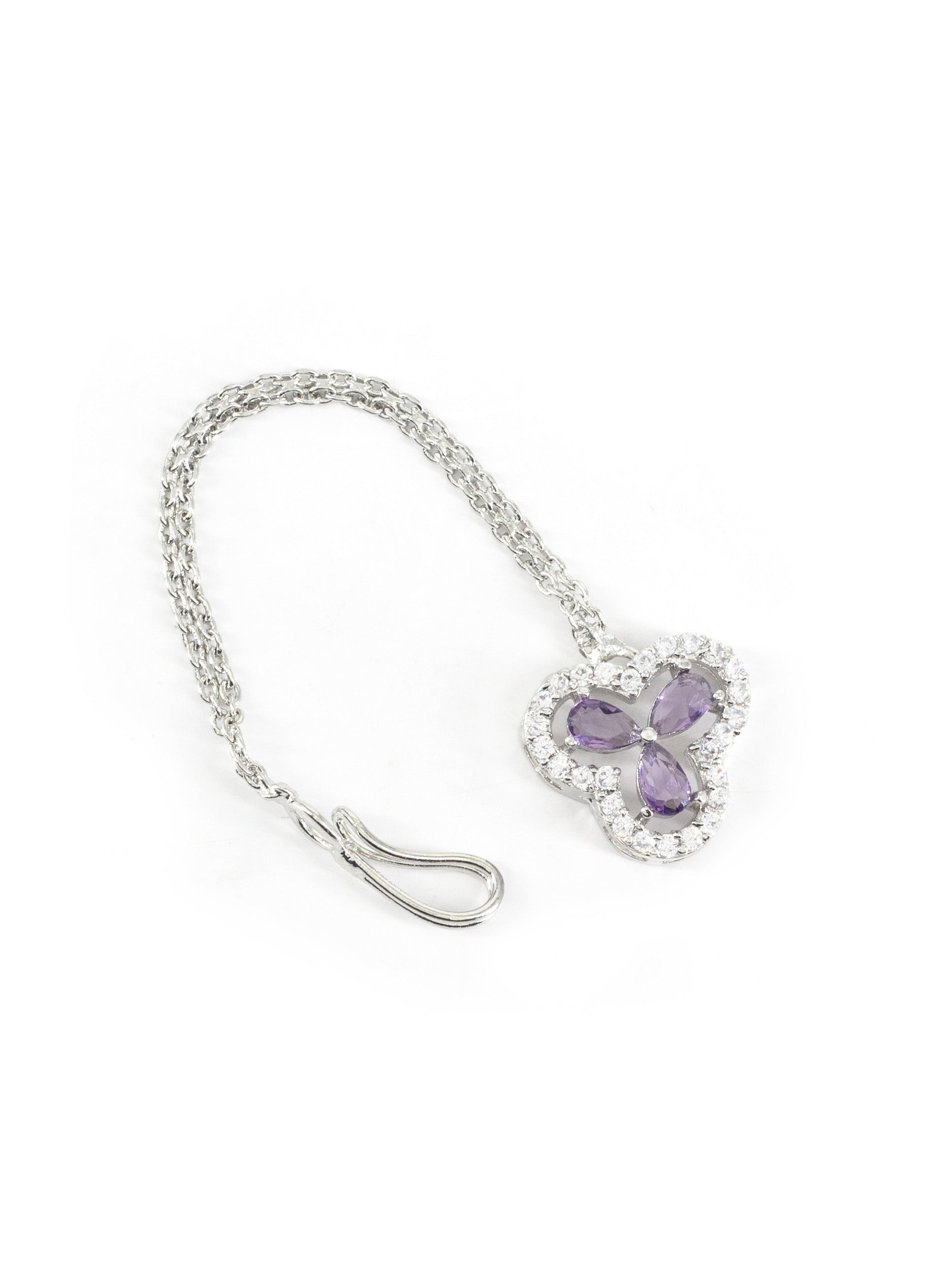 Silver Plated Purple AD Maang Tikka secured with S-hook Closure.