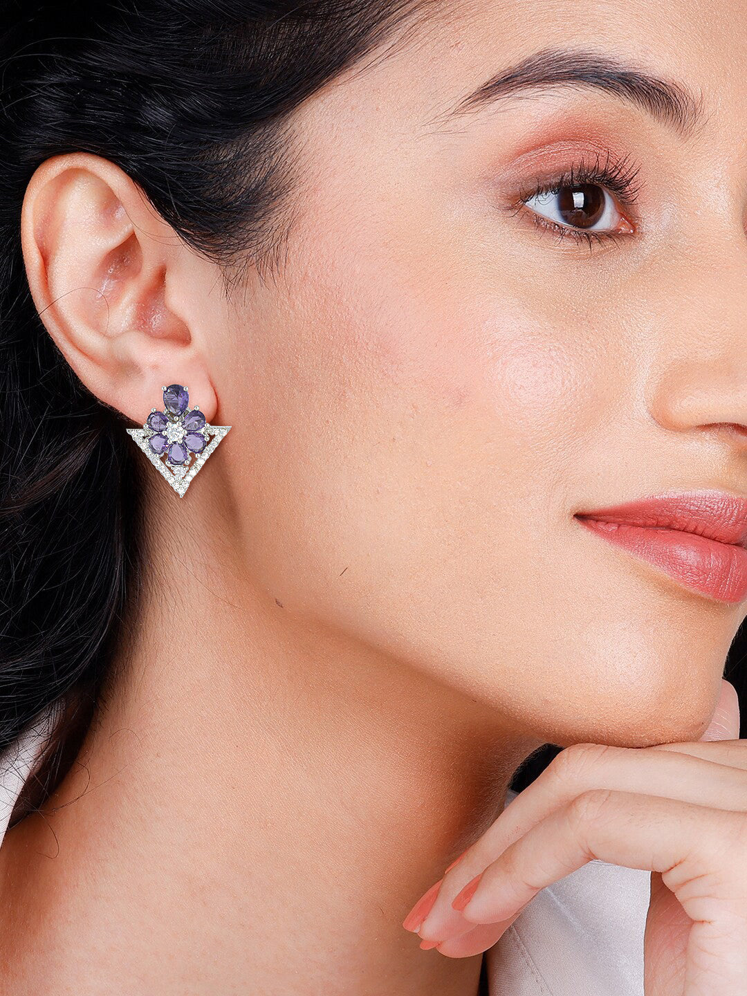 Silver Plated Purple Floral Stud Earrings Comes With Post & Back Closure For Easy Use.