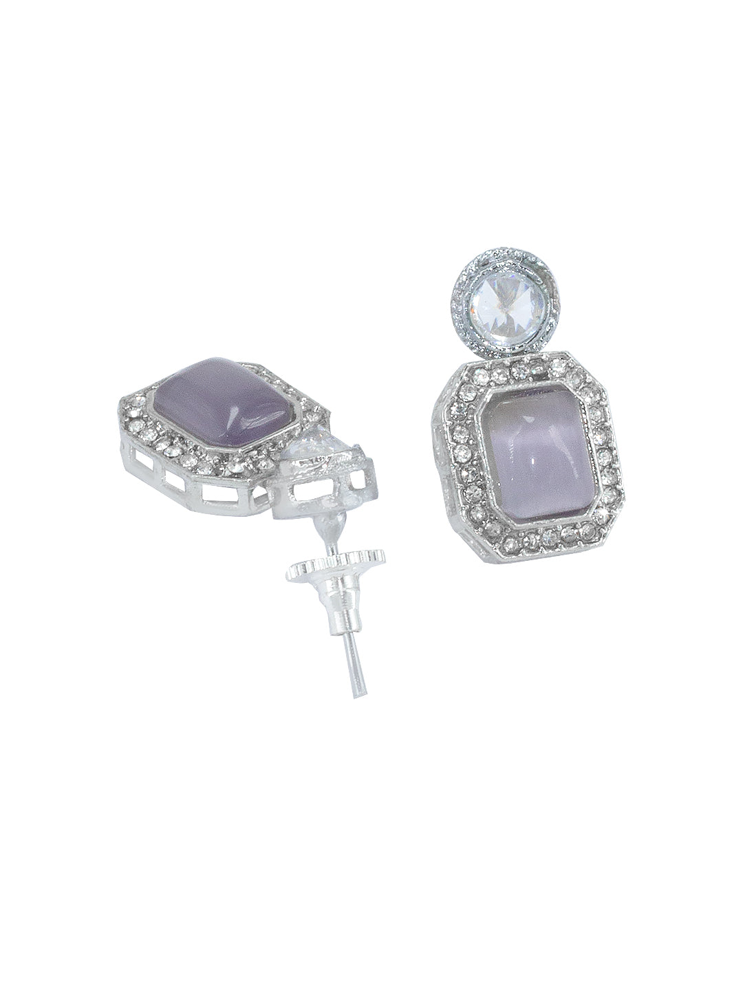 Silver-Plated Purple Kundan Stone-Studded Jewellery Set
