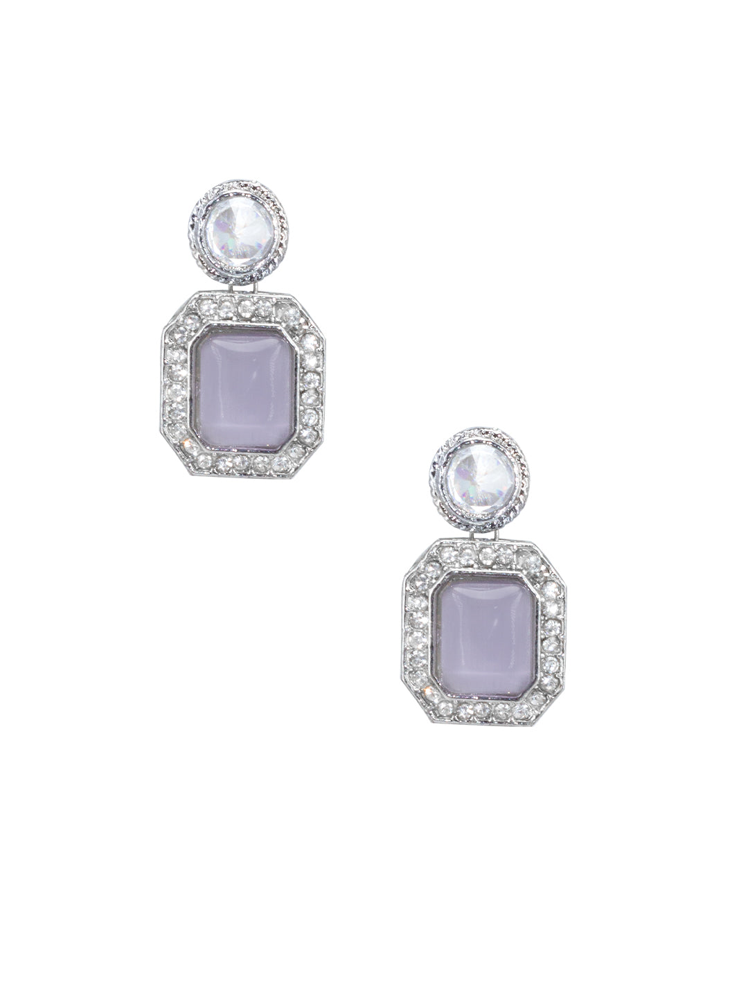 A pair of matching drop earrings, each secured with a post-and-back closure