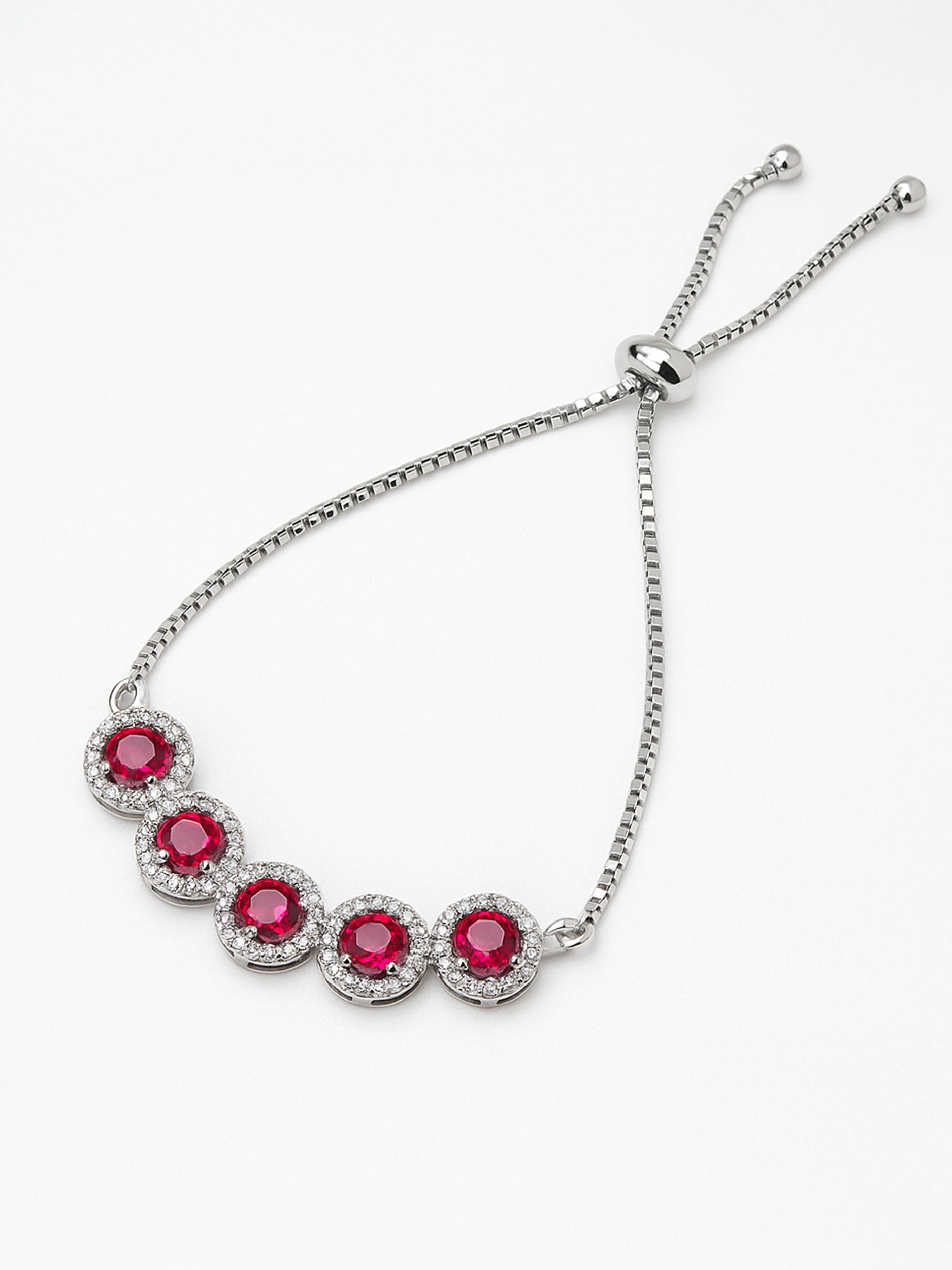 Silver Plated Red American Diamond Adjustable Bracelet with Slider Closure.