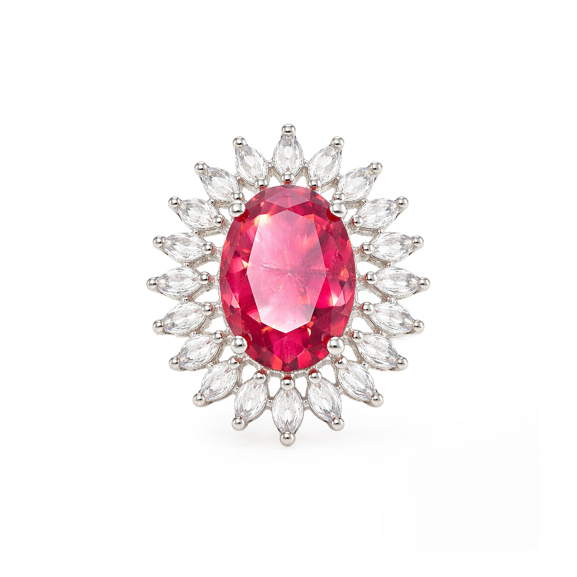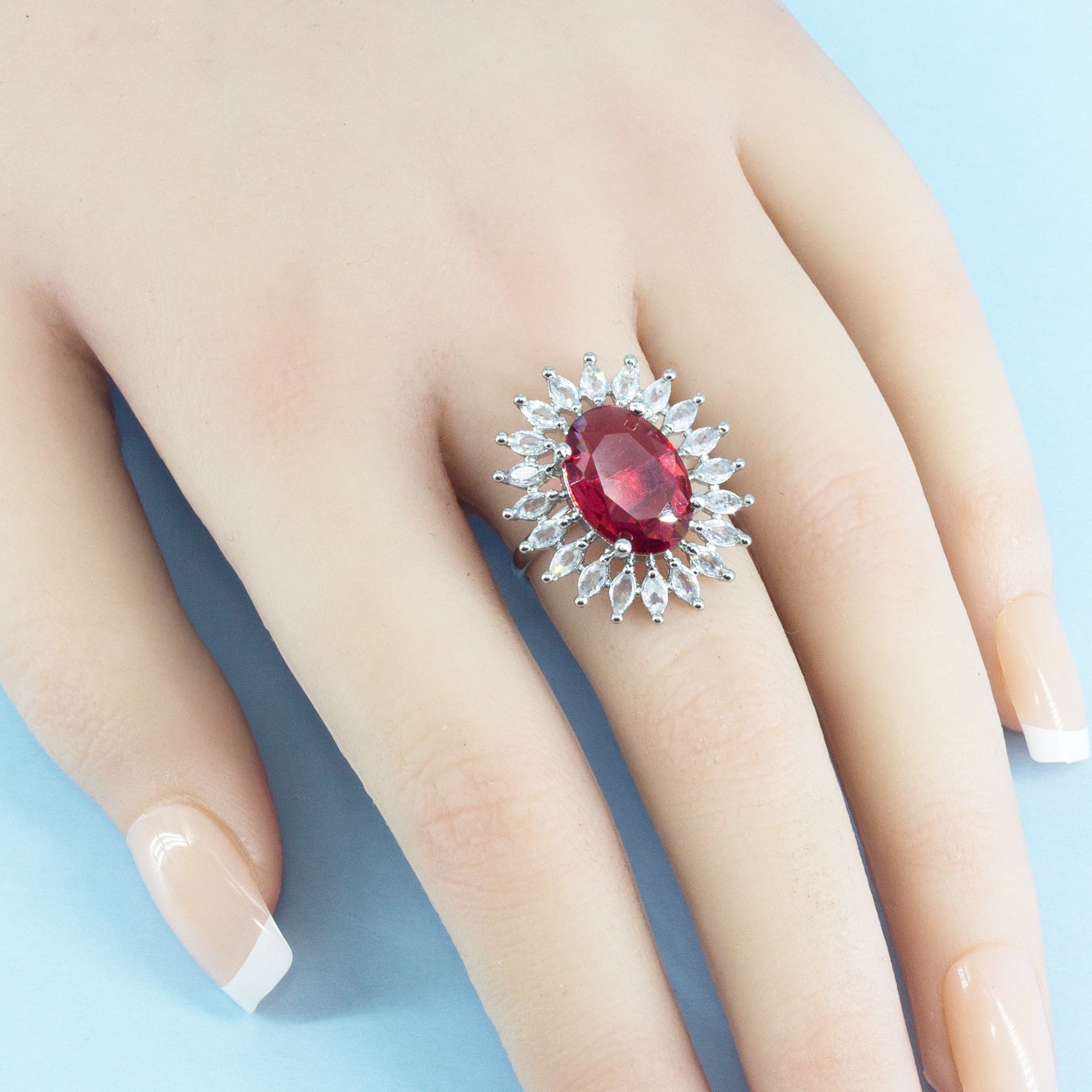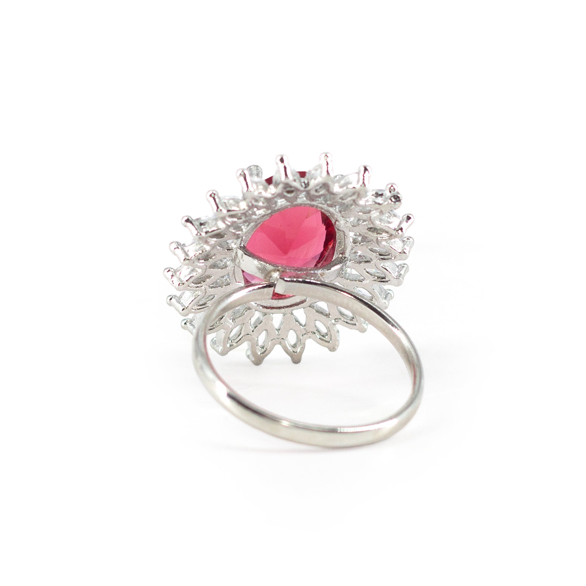Silver Plated Red AD Finger Ring for Women Secured with Adjustable Closure.