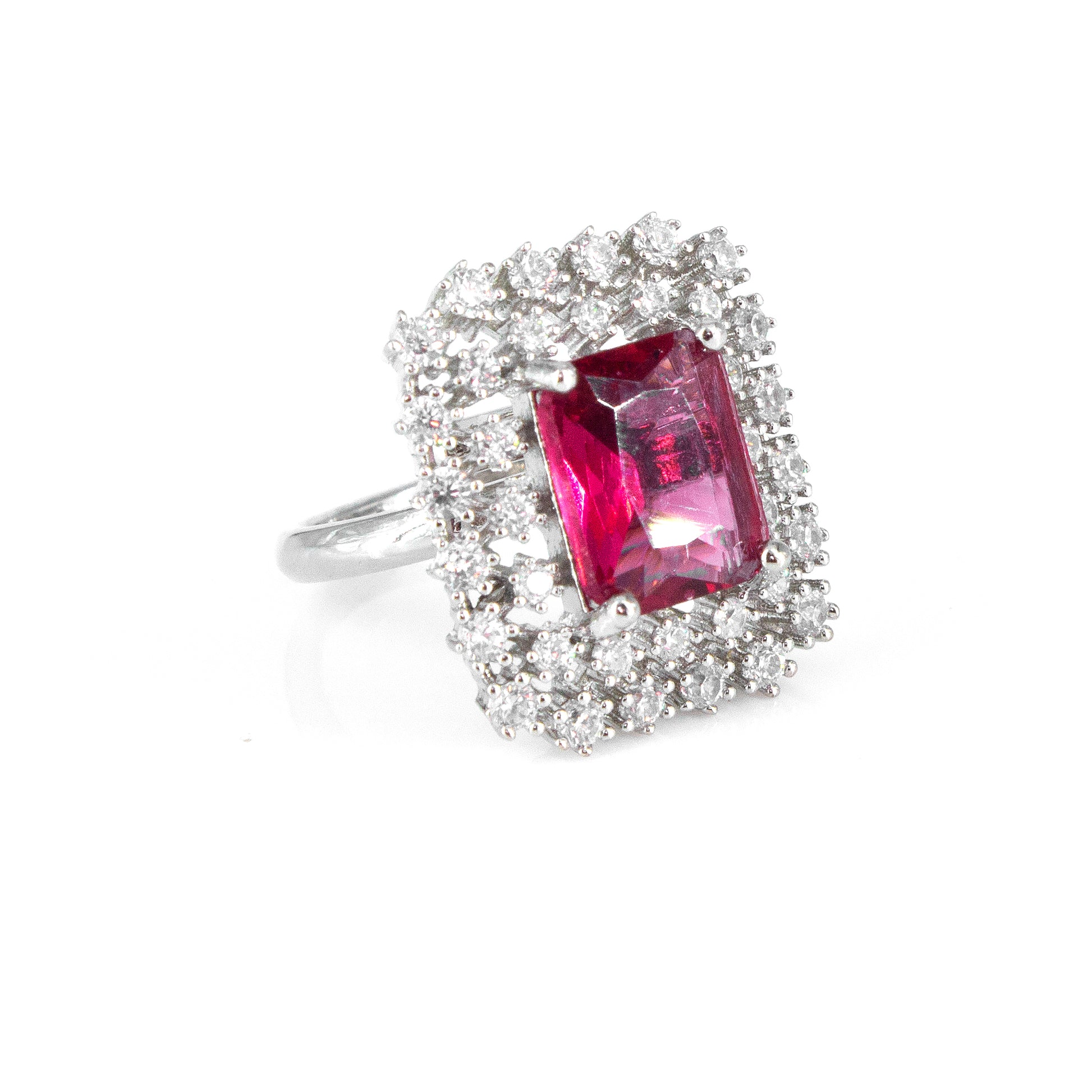 Silver Plated Red American Diamond Ring Comes In Adjustable Size For Every Traditional Yet Classy Days Outfit.