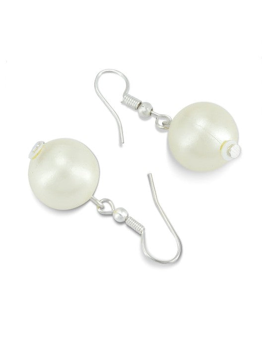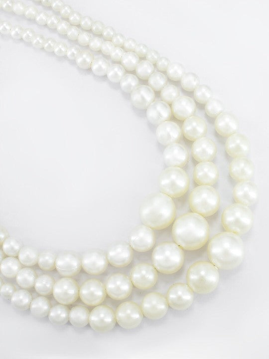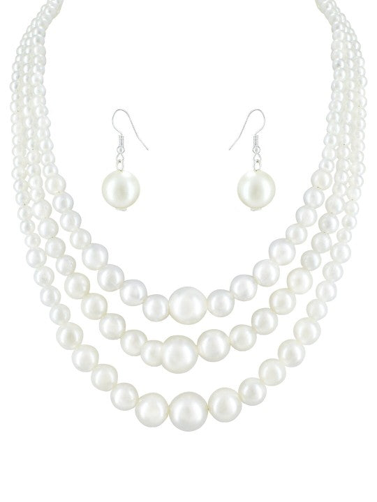 Silver Plated Three Layered Pearl Beaded Trendy Necklace & Earrings Set
