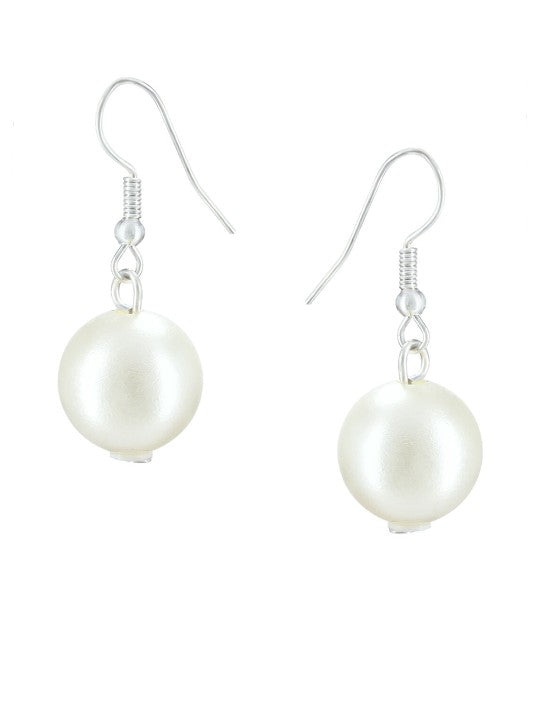 A pair of matching drop earrings, each secured with a post-and-back closure