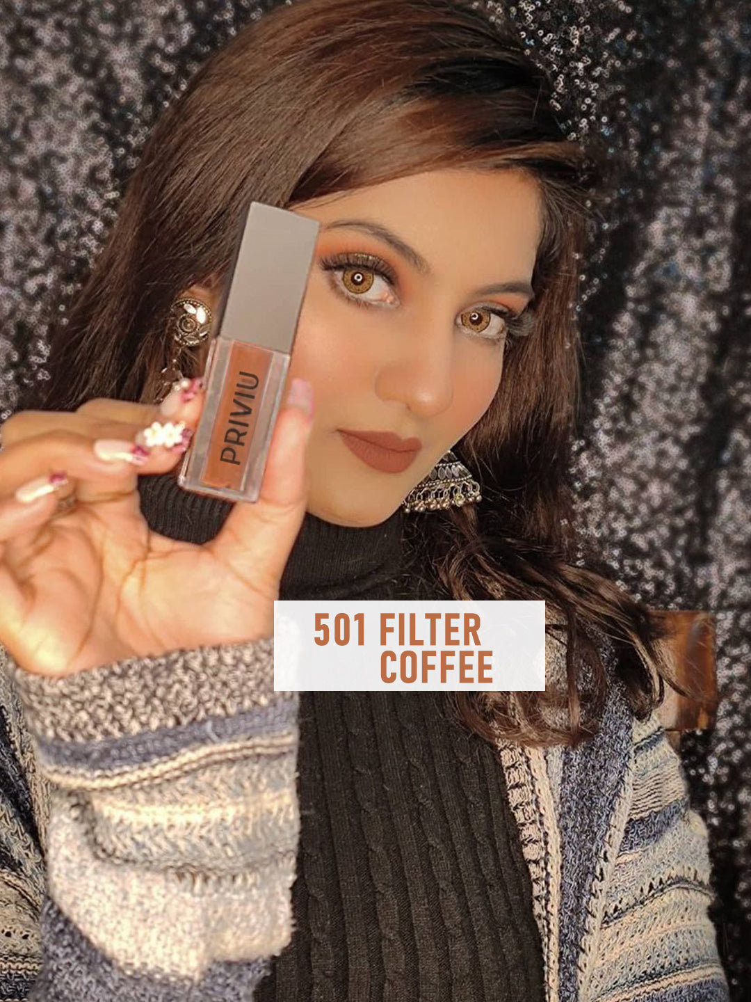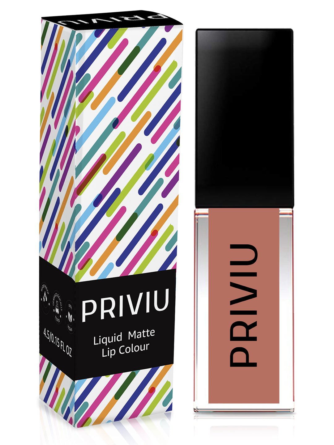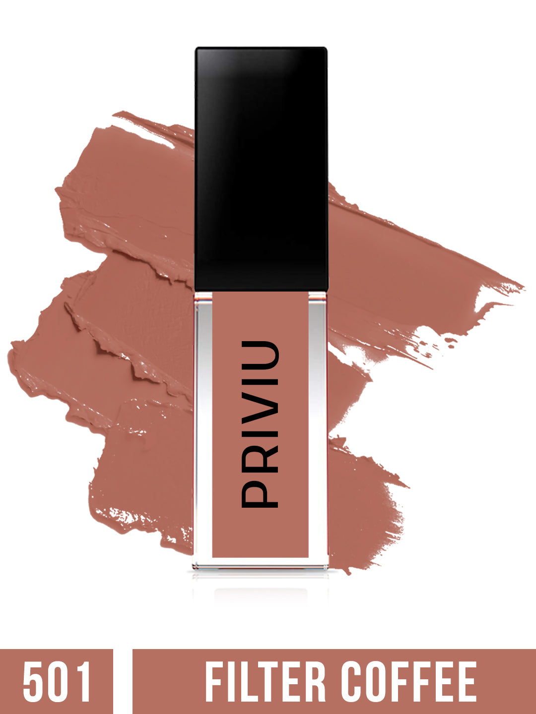 PRIVIU - Soft Touch Matte Liquid Lipstick - Waterproof, Smudge Proof and Non Transfer, Lasts up to 12 Hrs, Non Drying Formula - Filter Coffee 501, Nude Brown Lipstick With Peach Undertone