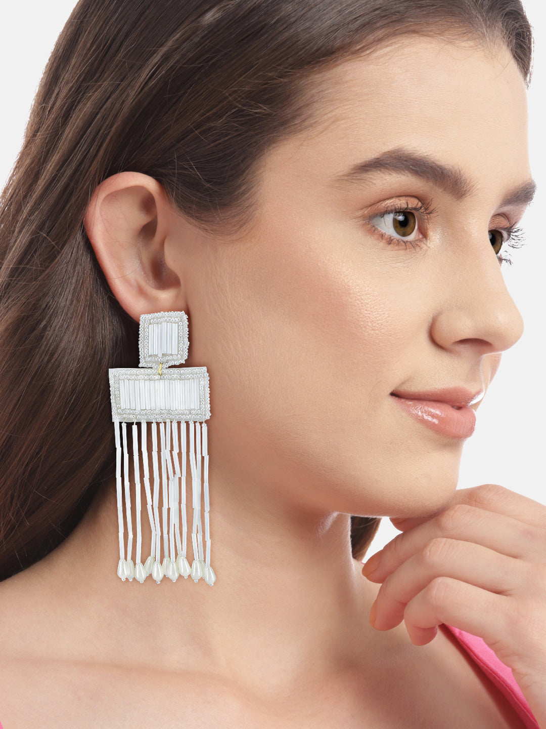 Rhodium Plated Teardrop American Diamond Studded Trendy Pendant Set